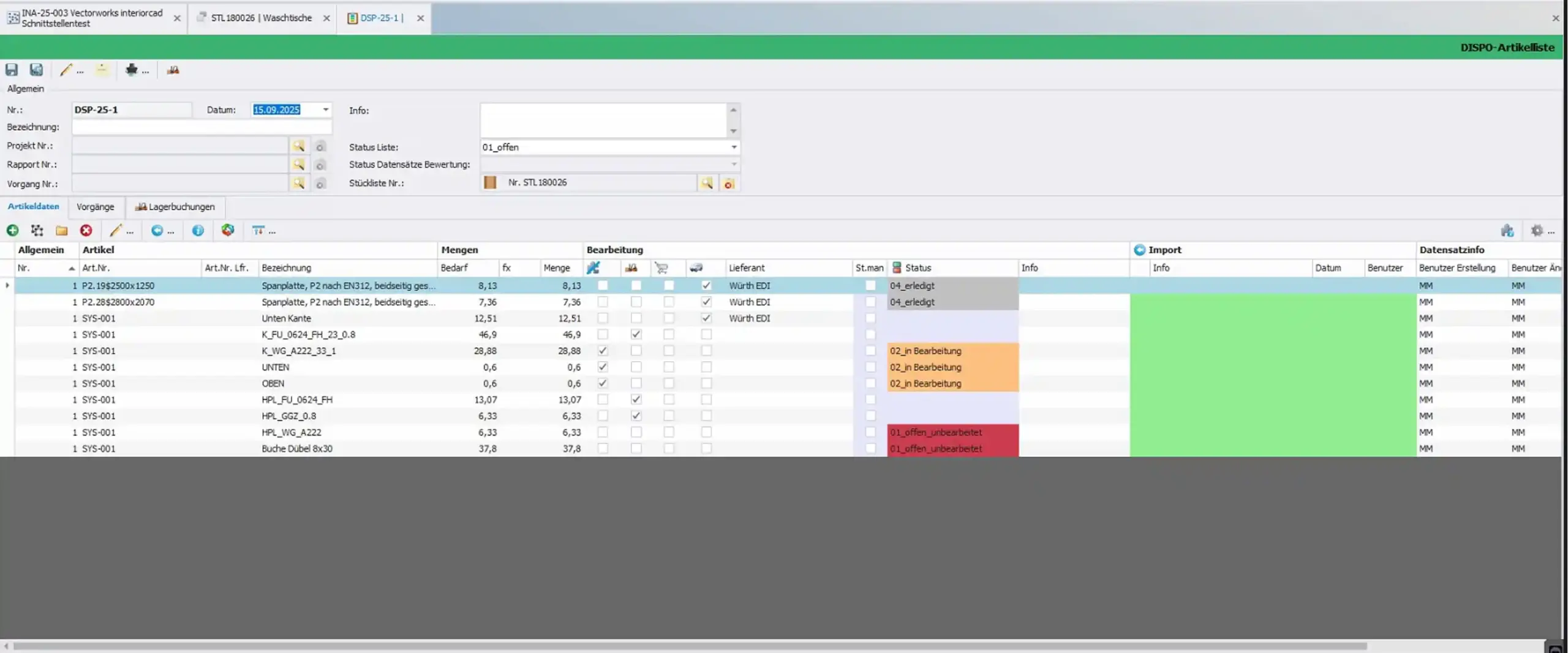 Die Stückliste ist die Basis für Ihren Materialbedarf. ANNEXUS analysiert die erfassten Teile und erstellt automatisch eine Dispoliste, aus der hervorgeht: